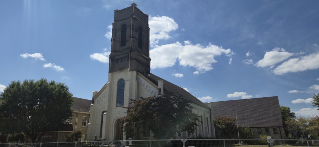 At the time that the parish ceased operations two years ago, this building was the oldest in this north central Ohio city still housing its original congregation. It was gifted to the local Port Authority, which then conducted a minimal effort to market and transfer the structure for church or adaptive reuse. A windstorm caused exterior cladding damage to the steeple, and the authority changed its position to seeking the entire sanctuary’s removal for new residential construction. The city opposed those plans, and the steeple has been partially removed while the entire building faces an unknown future.