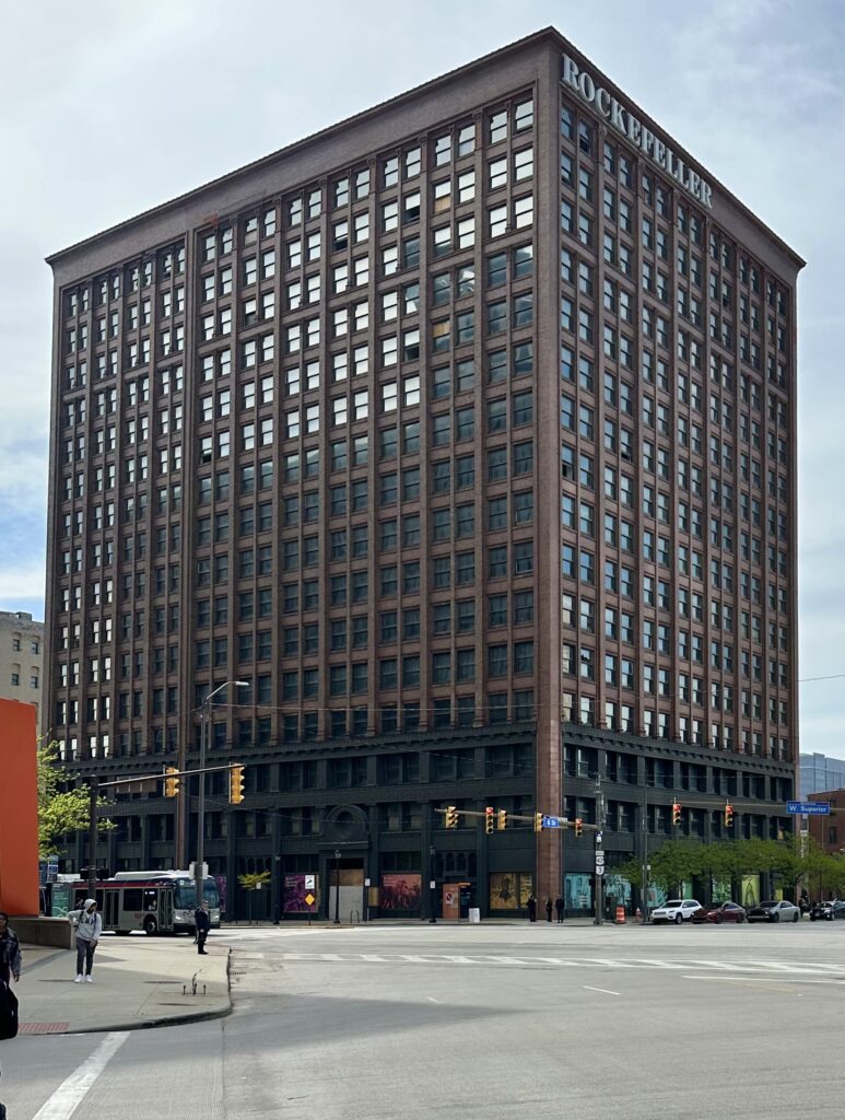 The 17 story Rockefeller Building in Cleveland’s Warehouse District was commissioned by John D. Rockefeller and constructed between 1903 and 1905. Its lower floors display an ornate cast iron facade, while upper levels are brick capped by a cornice influenced by Louis Sullivan. Once slated for apartment conversion, redevelopment plans collapsed in April 2024 due to funding gaps. The structure is now vacant, vandalized, and nearing sale, with the intentions of prospective owners unknown, leaving one of downtown’s notable historic towers in a precarious and highly uncertain condition.